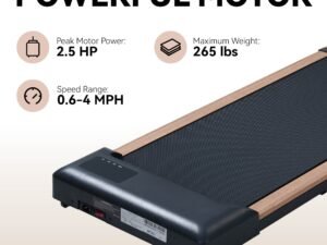 Offering a versatile speed range from 0.6 to 4mph, this treadmill accommodates a variety of fitness needs. Whether you’re engaging in a light walk, a brisk jog, or using it as an under-desk treadmill to stay active while working, this machine adapts to your routine seamlessly. It’s perfect for achieving your fitness goals while maintaining a busy lifestyle.