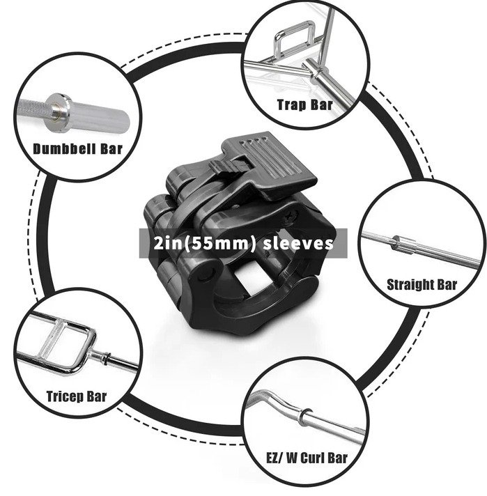 Fasten to all standard Olympic poles with a 2″ (50mm) sleeve. 10 times the grip of the Olympic bar clamp (ABS locked). Easy to use, one-handed installation, with a spring-actuated spring-loaded snap design to keep you safe. Ideal for cast plates, cast grips, and rubber grips, it is a must-have for barbell workouts.
